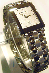 | 【ラドー・インテグラル】型番:R20484103 ¥115,000(税込定価) メンズ シルバー文字板 クオーツ カレンダー付き SSケース&ブレス サファイヤクリスタル ケースサイズ:32×27mm 厚み:7ミリ |